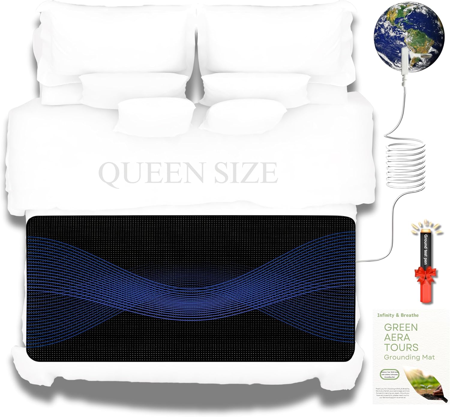 - Complete Grounding Kit: The package includes a grounding mat, a 15-foot grounding cord, a grounding test pen, and an instruction manual. The test pen verifies the presence of conductive silver fibers in the mat. (Note: The test pen does not confirm grounding connection; it only checks for conductivity.)