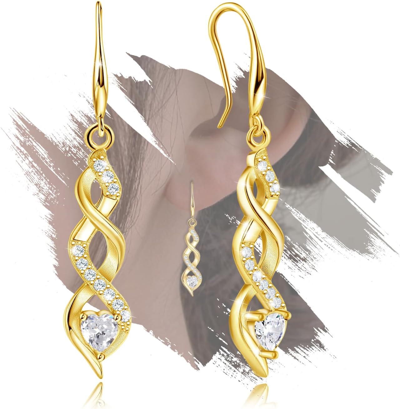 Infinity Earrings Sterling Silver Drop Dangle Earrings for Women - Hypoallergenic Heart Cubic Zirconia Long Dangling Earring Fashion Dainty Jewelry Gift for Here Wife Mom Birthday Valentine's Day