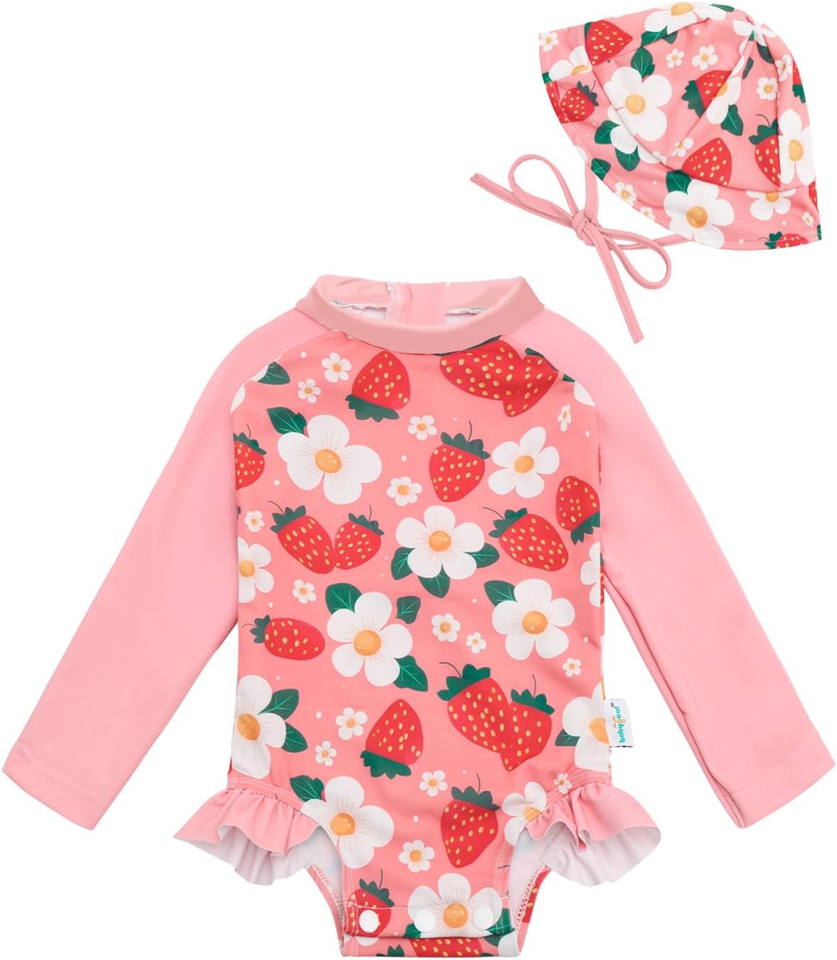 babygoal Baby Girls Long Sleeve One Piece Rash Guard Swimsuit with Zipper, UPF 50+ Sun Protection