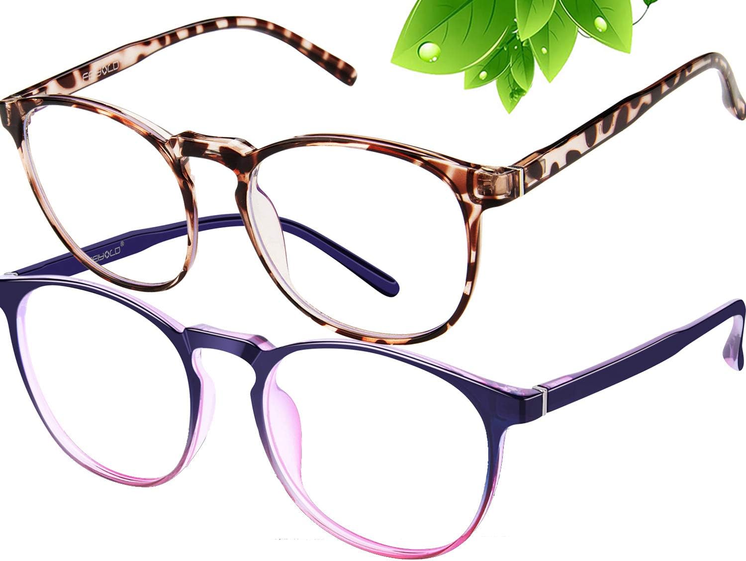 Blue Light Blocking Glasses Women/Men,Retro Round Anti Eyestrain Computer Gaming Glasses(2Pack)
