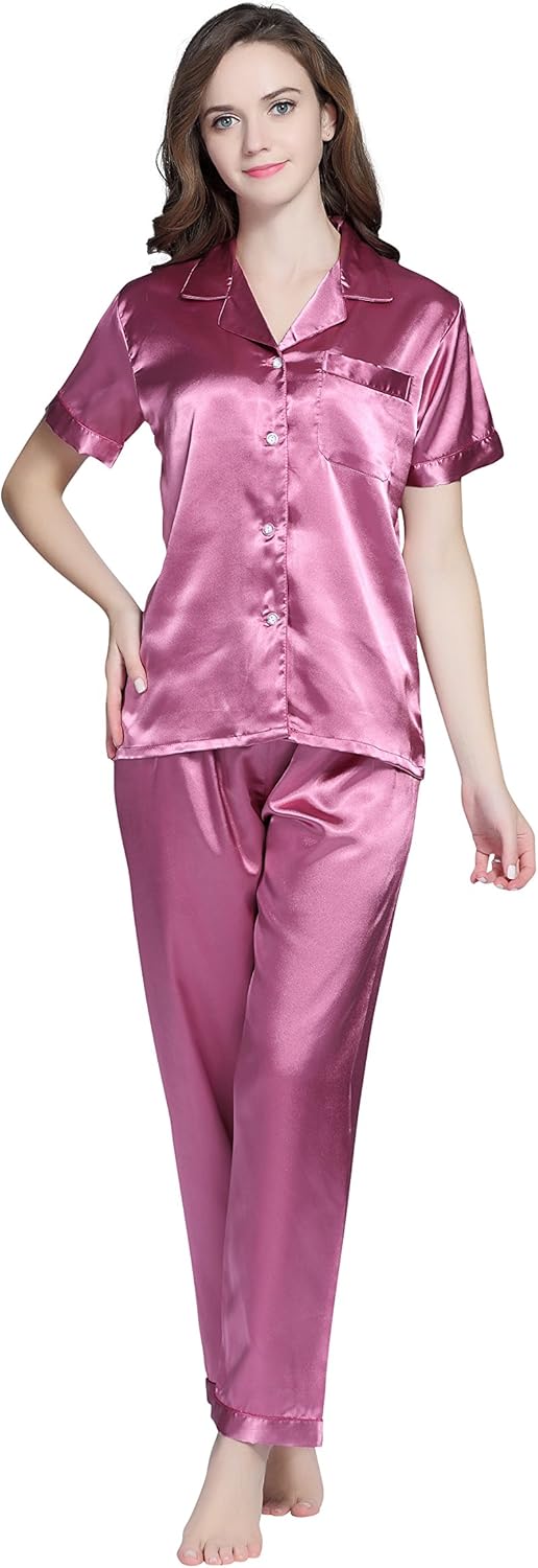 TONY AND CANDICE Women's Pajama Set, Short Sleeve Satin Sleepwear