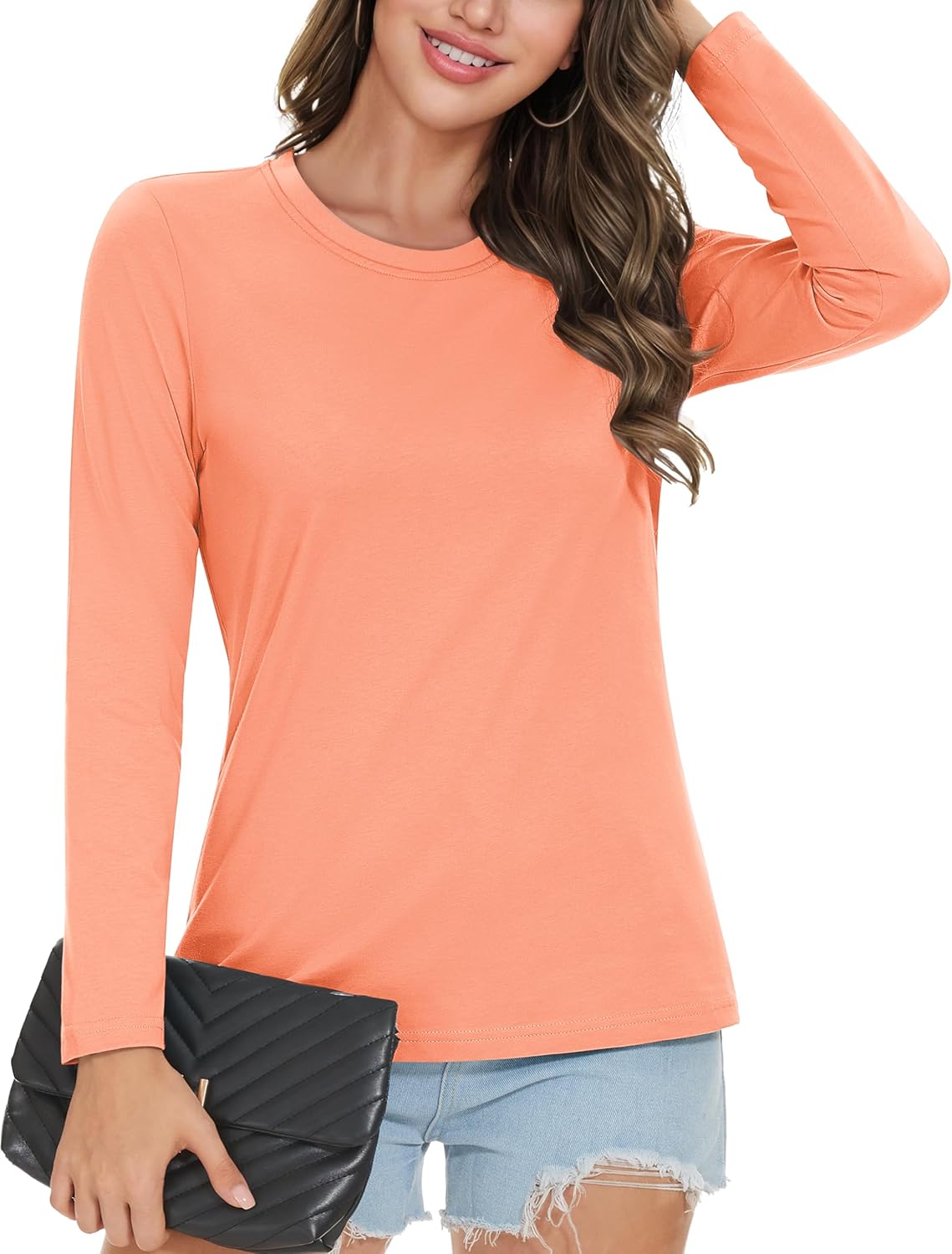 MAGCOMSEN Women's Cotton Long-Sleeve Crew-Neck T-Shirt Classic-Fit Shirt Soft Breathable Casual Tee Basic Tops