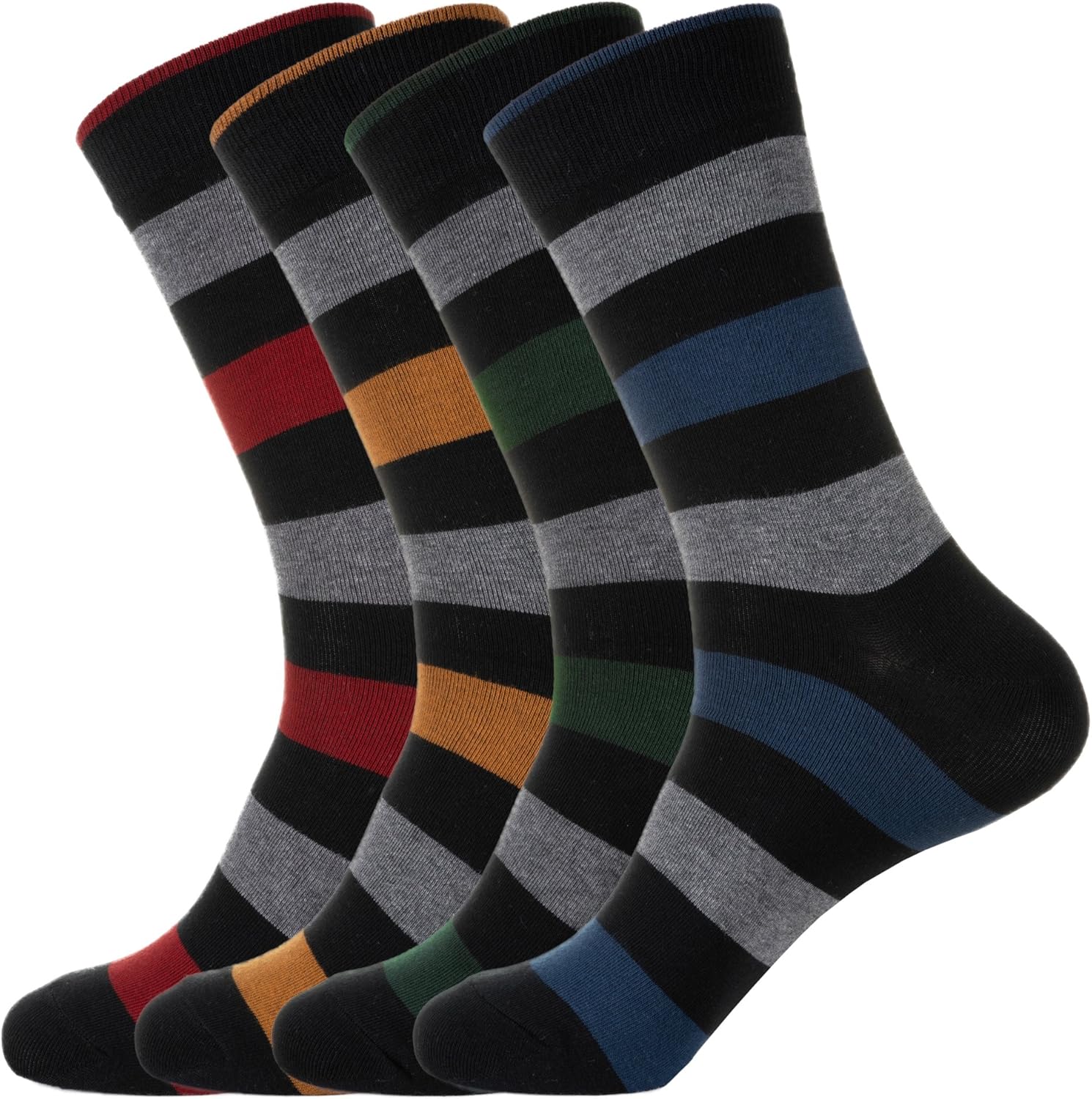 KONY Men's Cotton Dress Crew Socks 4 Pack - Fun Colorful Striped Business Socks Gift for Men, Size 9-12