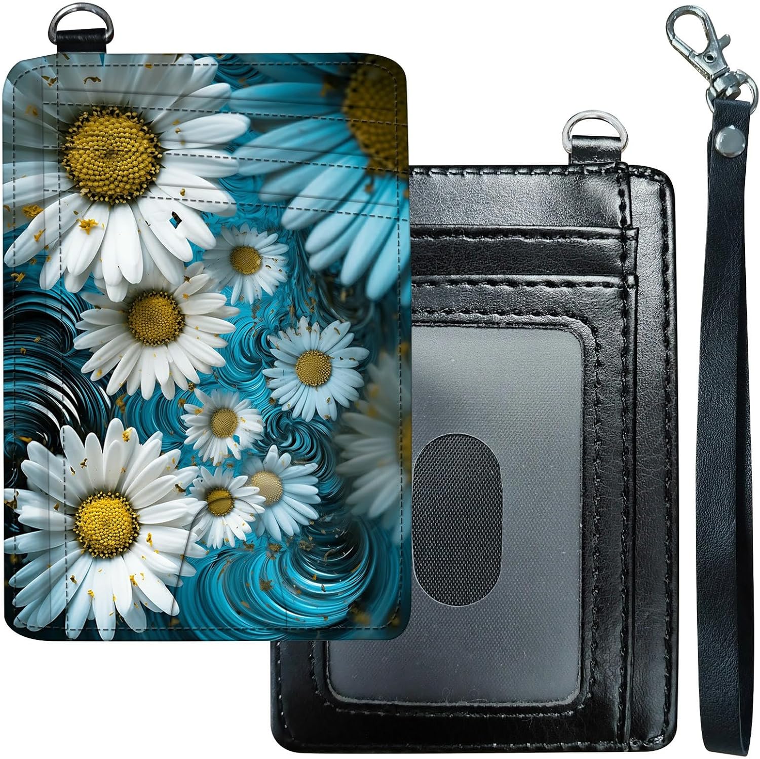 Slim Minimalist Wallet for Men & Women [ Wrist Strap ] PU Leather RFID Blocking Front Pocket Credit Card Holder Small Wallets Card Cases with ID Window, Small Daisy