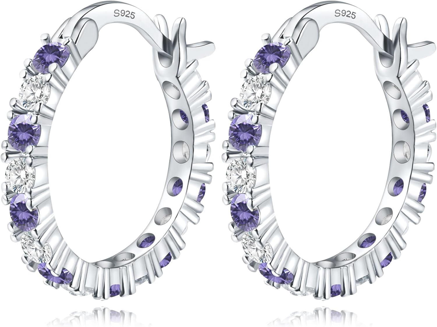 S925 Sterling Silver Earrings Hoop and Stud Sets for Women Trendy 14K White Gold Plated Hypoallergenic Cubic Zirconia Hoops Cute Lightweight Earrings Jewelry Birthday Gifts for Mom Girls