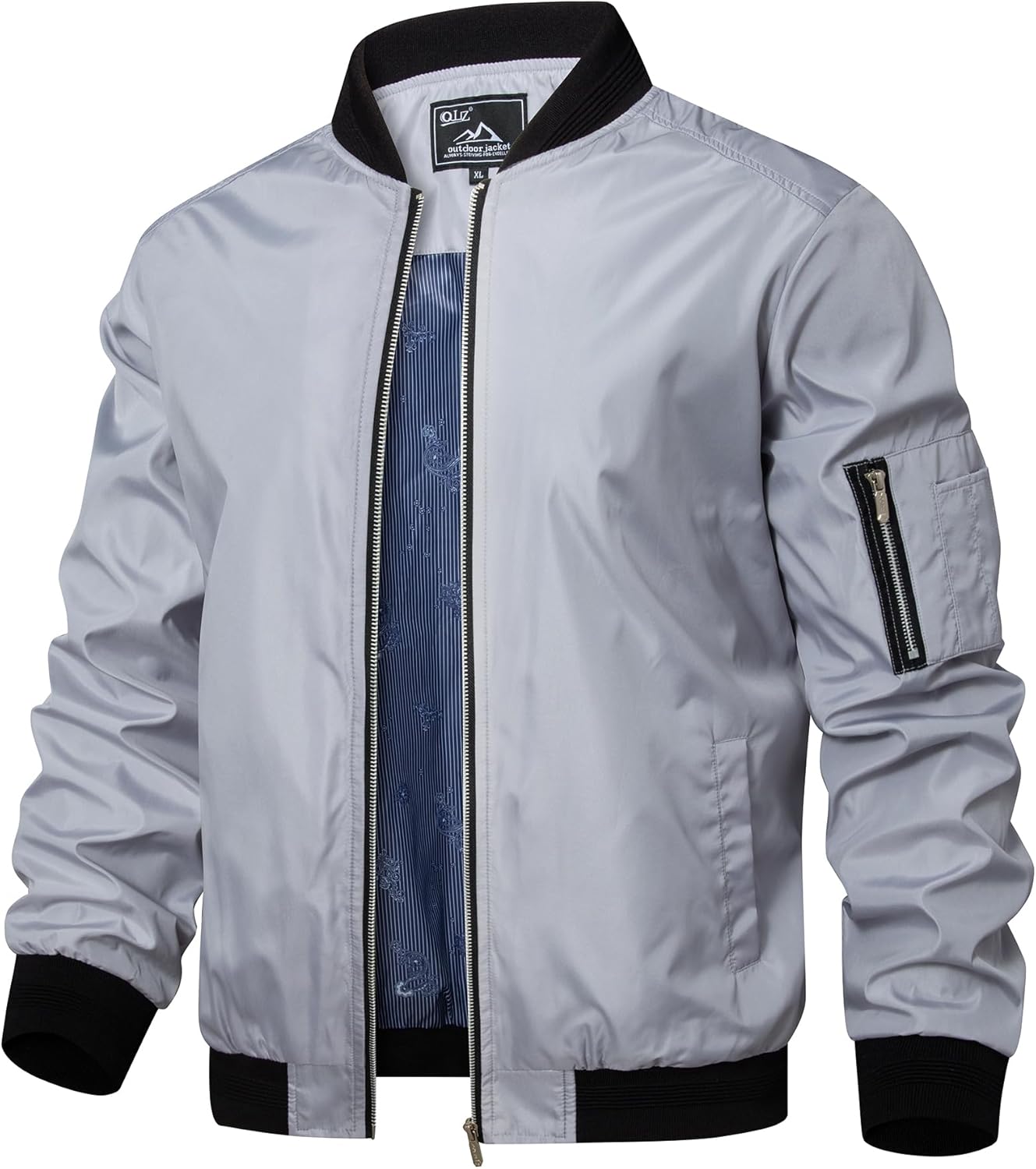 QLZ Men's Bomber Jackets Varsity Flight Jacket For Men Casual Lightweight Windbreaker Windproof Track Puffer Coat