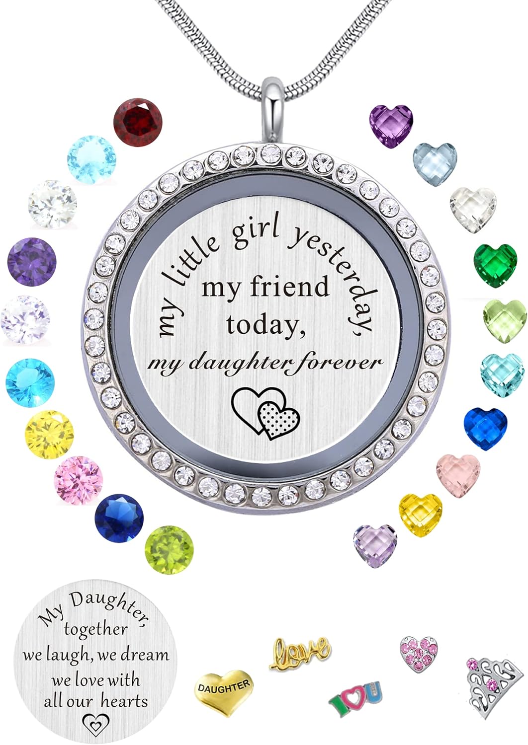 Best Gift Floating Charm Living Memory Lockets with Birthstone, 30mm Stainless Steel Necklace