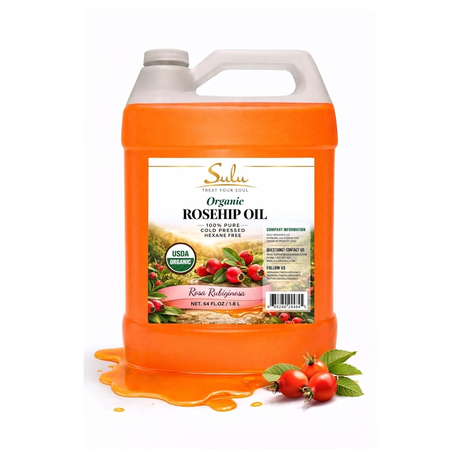 SULU ORGANICS 64 FL.OZ- 100% Pure Certified Organic Unrefined Extra Virgin Rosehip Oil