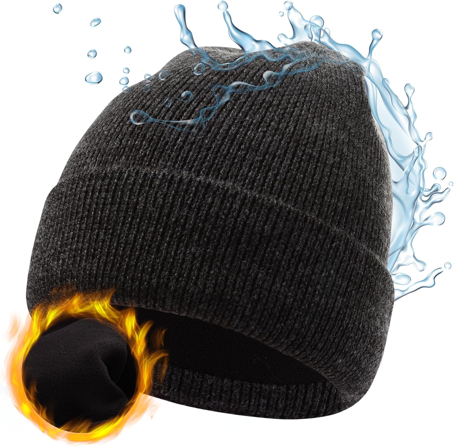 M/L/XL/XXL Waterproof Merino Wool Beanie for Men Women, Warm Fleece Lined Rainproof Windproof Winter Hat for All Weather