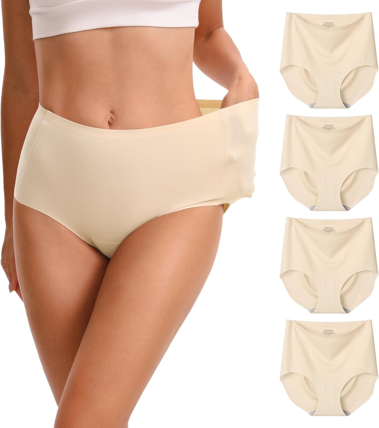 INNERSY Women's Seamless High Waisted Underwear No Show Panties Lightweight Full Coverage Briefs 4-Pack