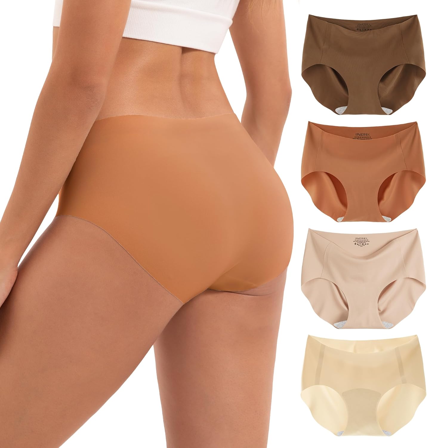 INNERSY Women's Seamless Hipster Underwear Soft No Show Invisible Stretch Panties 4-Pack