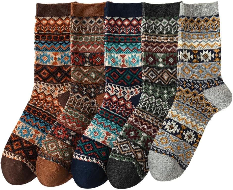 5 pairs fair isle retro ethnic style Women’s Bohemian Crew Socks – Thick Warm Cotton Autumn and Winter Socks, Cozy & Stylish Gift Idea fall socks women