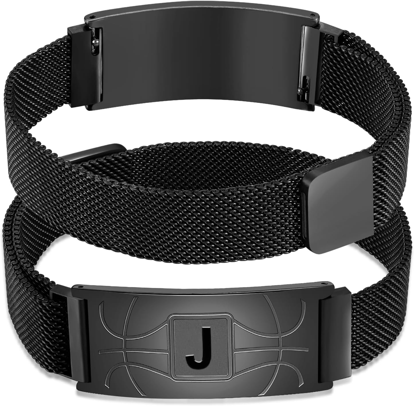 Easter Basket Stuffers - Basketball Initial Bracelet Stainless Steel A-Z Letter Charm Bracelets Adjustable Wristbands Basketball Christmas Gifts Idea for Players Team Lovers Men Boys