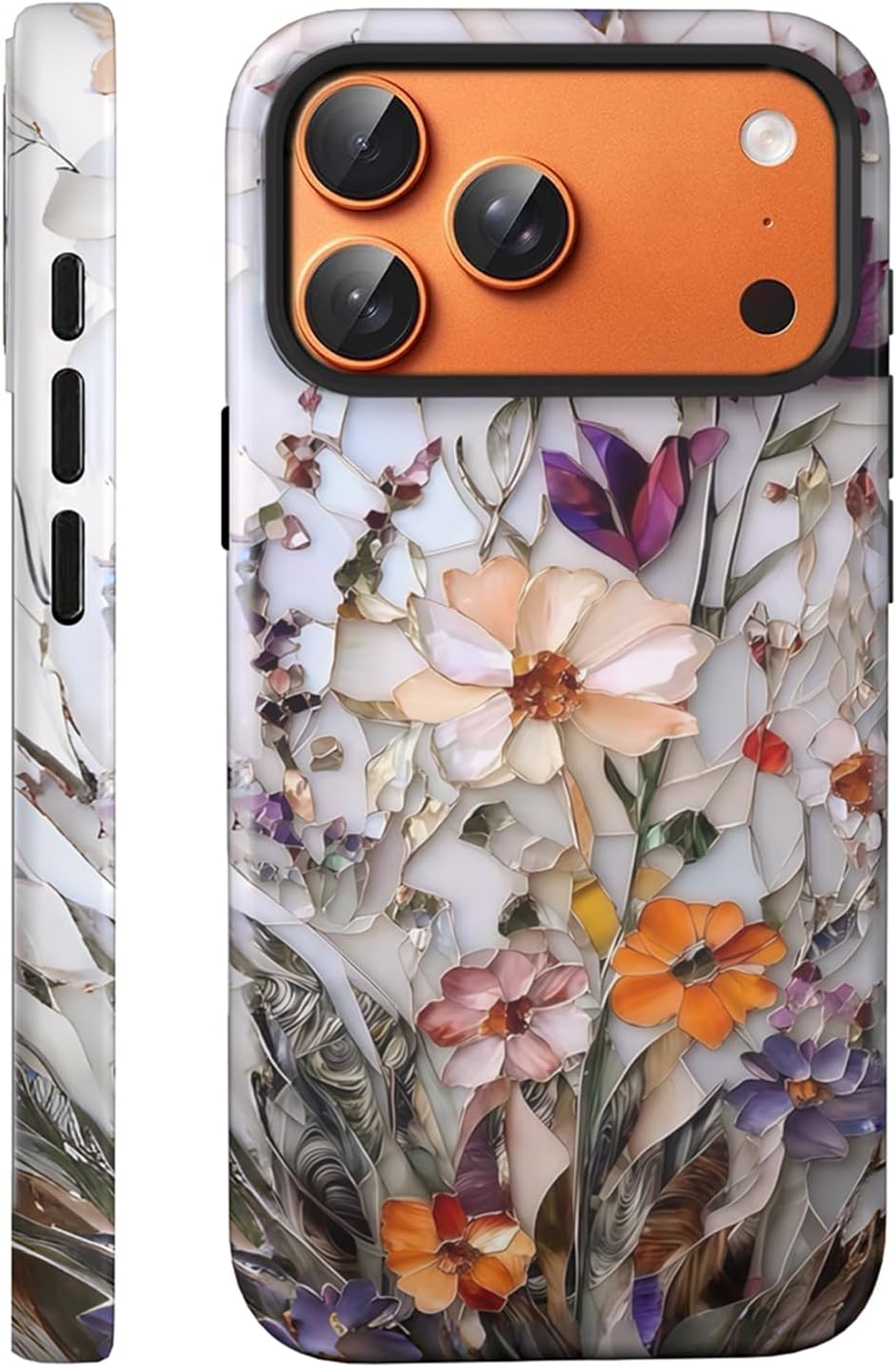 Compatible with iPhone 17 Pro Case 6.3”, Cute Floral Patterns Shockproof Protective Aesthetic Phone Case with Stylish Designs for Women Girl, Marble Pressed Flowers