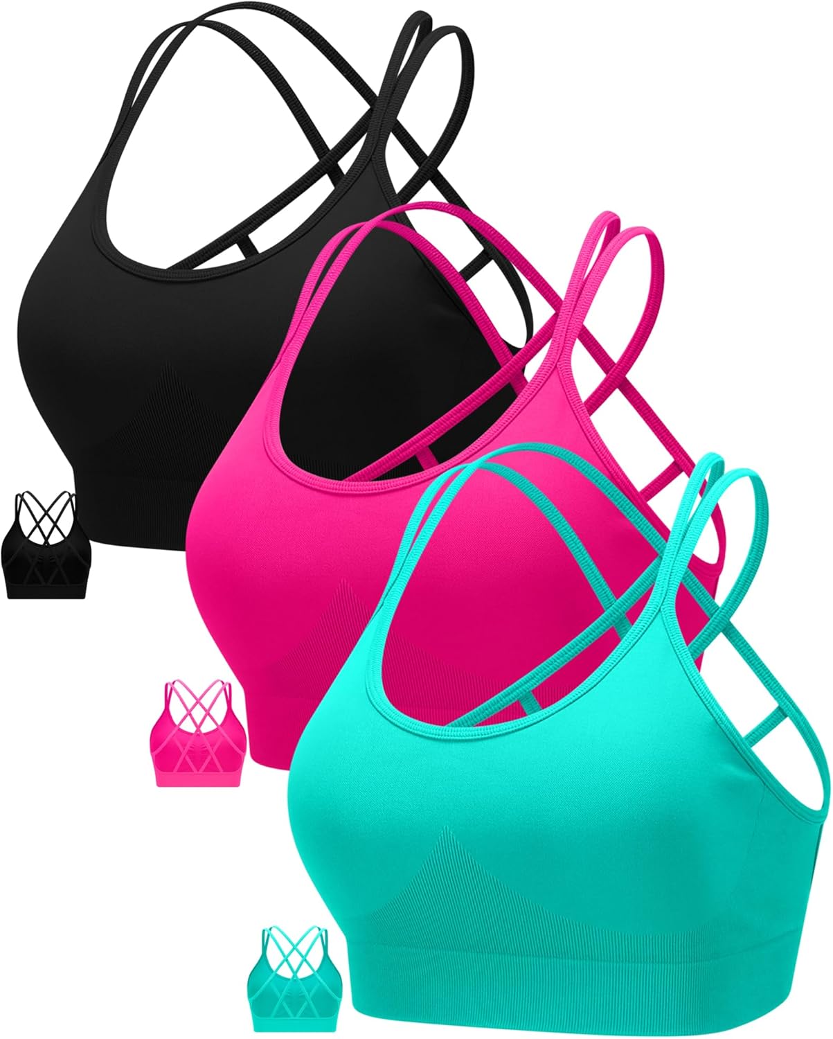 RUNNING GIRL Sports Bras for Women Pack Criss Cross Back Sexy Strappy Sports Bra Seamless Padded Yoga Bra with Removable Cups