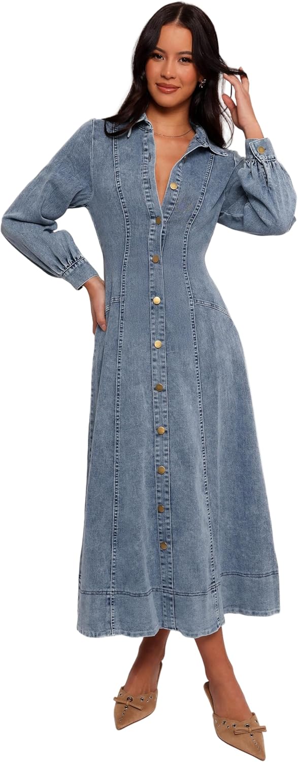 Petal & Pup Womens Emberly Long Sleeve Maxi Dress - Denim