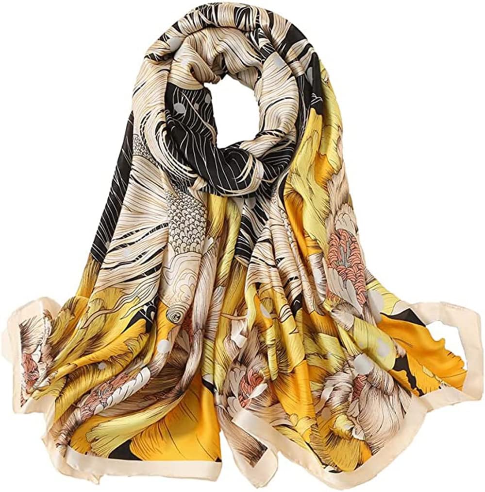 Silk Feeling Long Satin Scarf Fashion Beach Scarf Shawl Check Style Sunscreen Shawls Wraps-Lightweight Pattern
