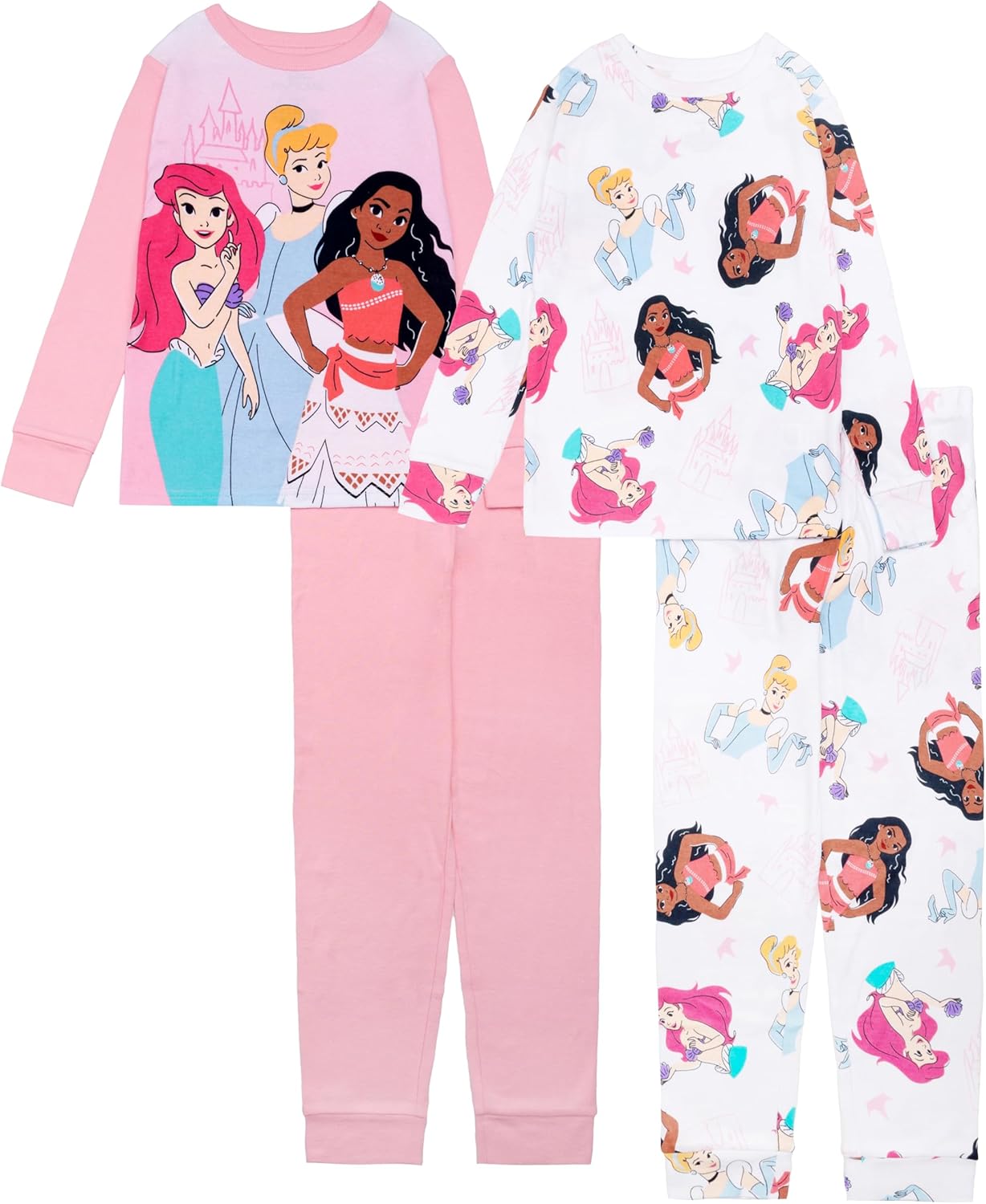 Disney girls 4-piece Snug-fit Cotton Pajama Set, Soft & Cute for Kids