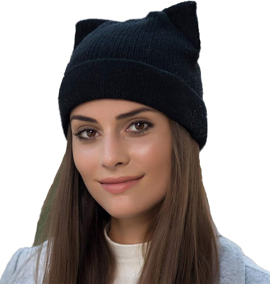 Women Cat Ear Beanie Hat Wool Braided Knit Trendy Winter Warm Cap