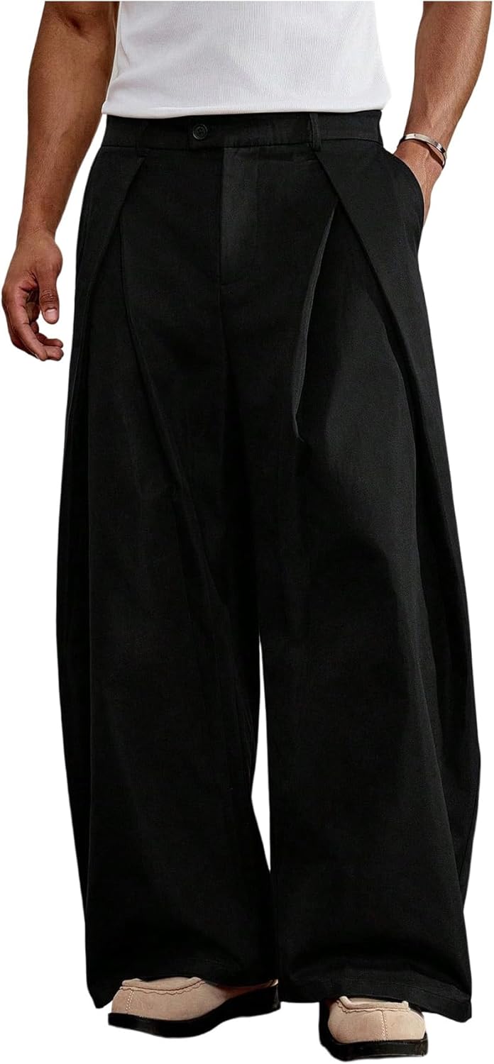 GORGLITTER Men's Baggy Dress Pants Wide Leg Pleated High Waisted Streetwear Trousers Track Pants Work Business Casual