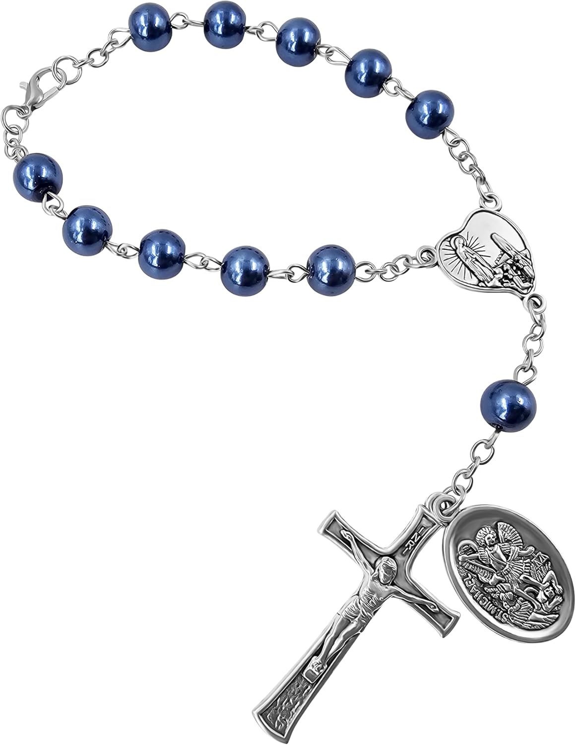 TALISMAN4U Saint Michael Guardian Angel Medal Rosary for Car Rearview Mirror Glass Beads Our Lady of Fatima Catholic One Decade Auto Rosary Bracelet for Women Men Religious Gift