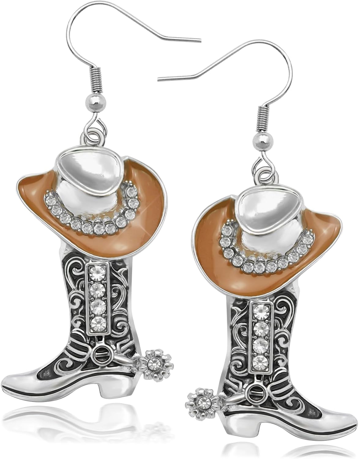 RechicGu Western Cowgirl Hat Boots Earrings Enamel Cowboy Hat Sparkly Rhinestone Boot Dangle Earrings Prom Country Concerts Rodeo Cowboy Outfits Jewelry Gift for Women