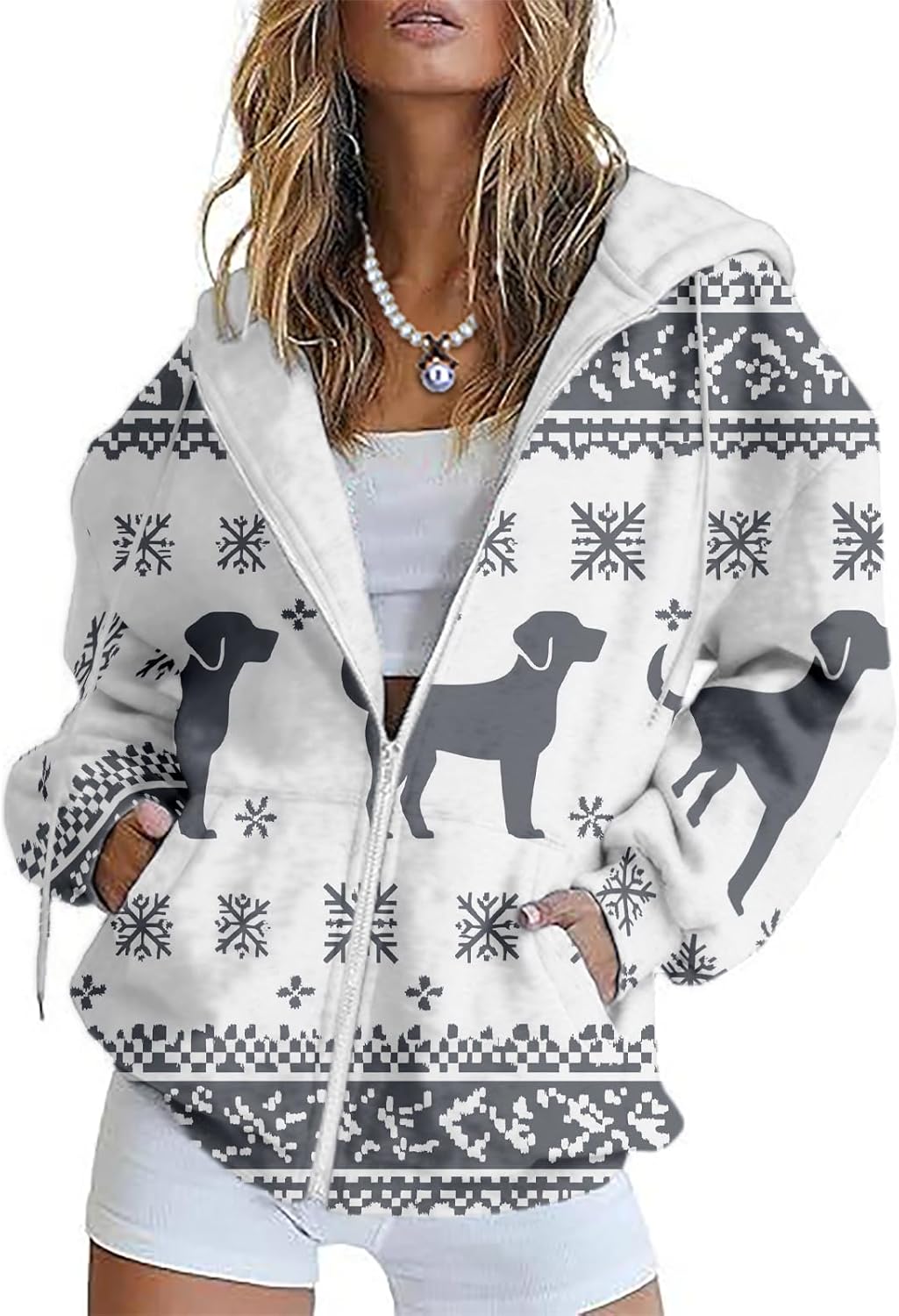 Christmas Hoodie for Women Zip Up Trendy Graphic Hooded Sweatshirt Comfy Casual Long Sleeve Winter Tops