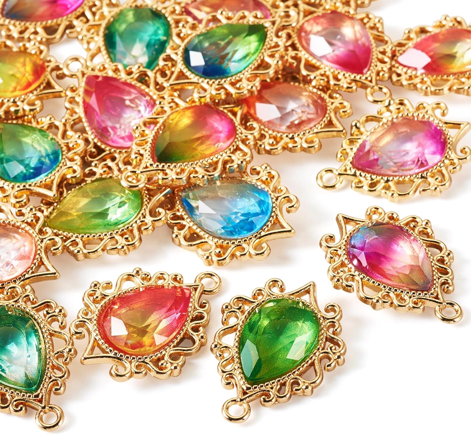 20Pcs Alloy Gradient Teardrop Charms Water Droplet Resin Rhinestone Pendants Drop Golden Charms Transparent Crystal Pendants Dangle Charms for Jewelry Making Necklace Earring Bracelet,Golden