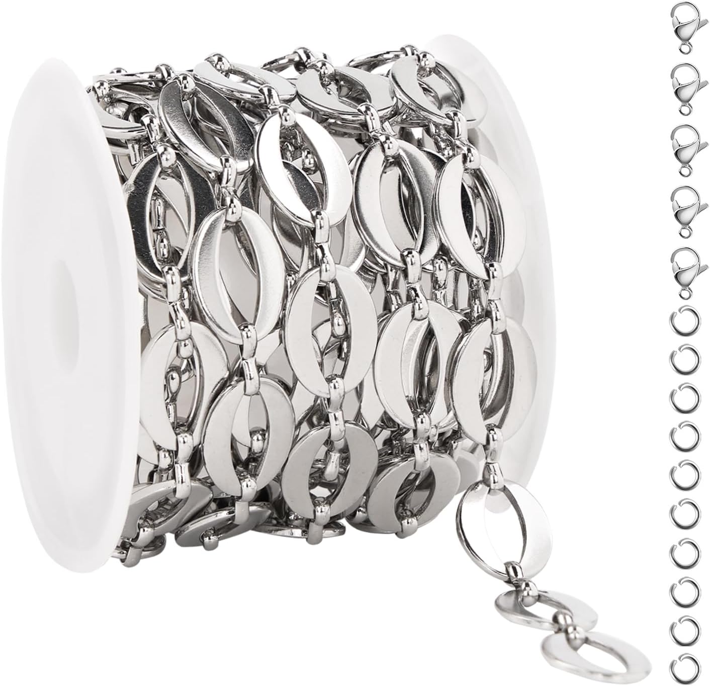 - Jewelry Chain Set- You can get 2 meters silver flat oval chain for jewelry making on a spool, come with 5pcs lobster clasps and 10pcs jump rings. Easy to diy various jewelry projects with these quality jewelry supplies findings.
