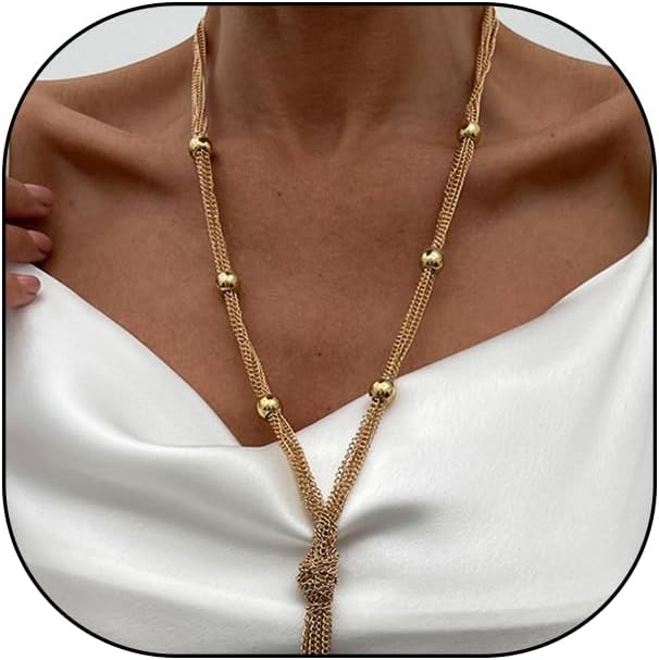 GIGB PBDK Long Gold Knot Statement Necklace for Women Dainty Minimalist Tassel Chain Y Choker Necklace Simple Charm Trendy Accessories