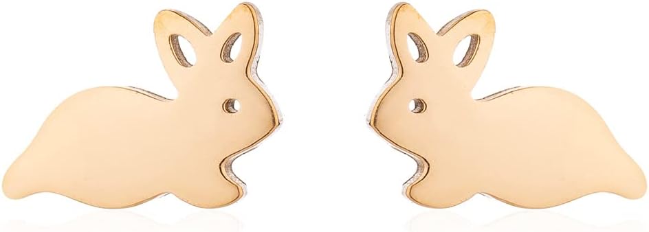 Cute Small Rabbit Stud Earrings for Women Gold Plated Stainless Steel Hypoallergenic Tiny Dainty Animal Cartilage Tragus Minimalist Polished Christmas Easter Jewelry