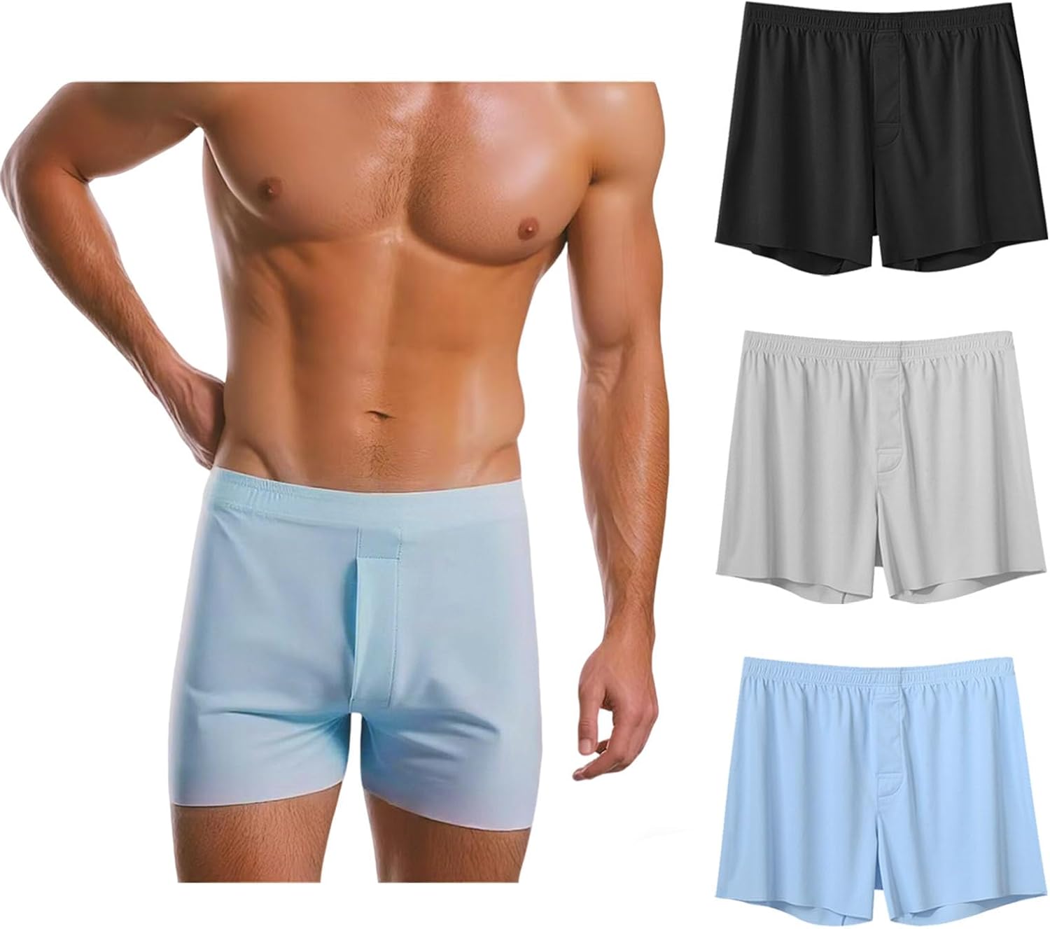 Men's Silk Boxer Shorts Ice Silk-feel Breathable Seamless Underwear Loose Fit Comfortable Boxers for Men