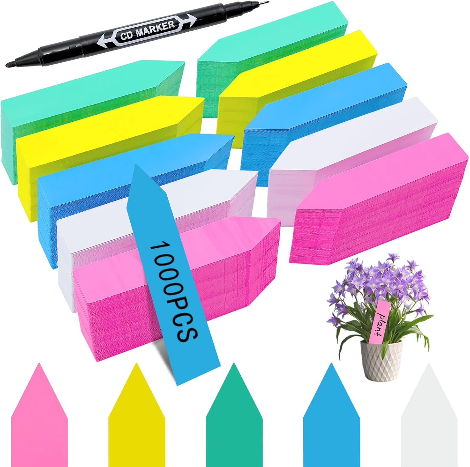 - Super Value - The multicolor garden labels inclues 200pcs white,blue,pink,green and yellow,a total of 1000 labels and a black marker pen,high quantity and cheap,enough for you to mark the plants,you also can plant lable by colors,for example, yellow represents sunflower