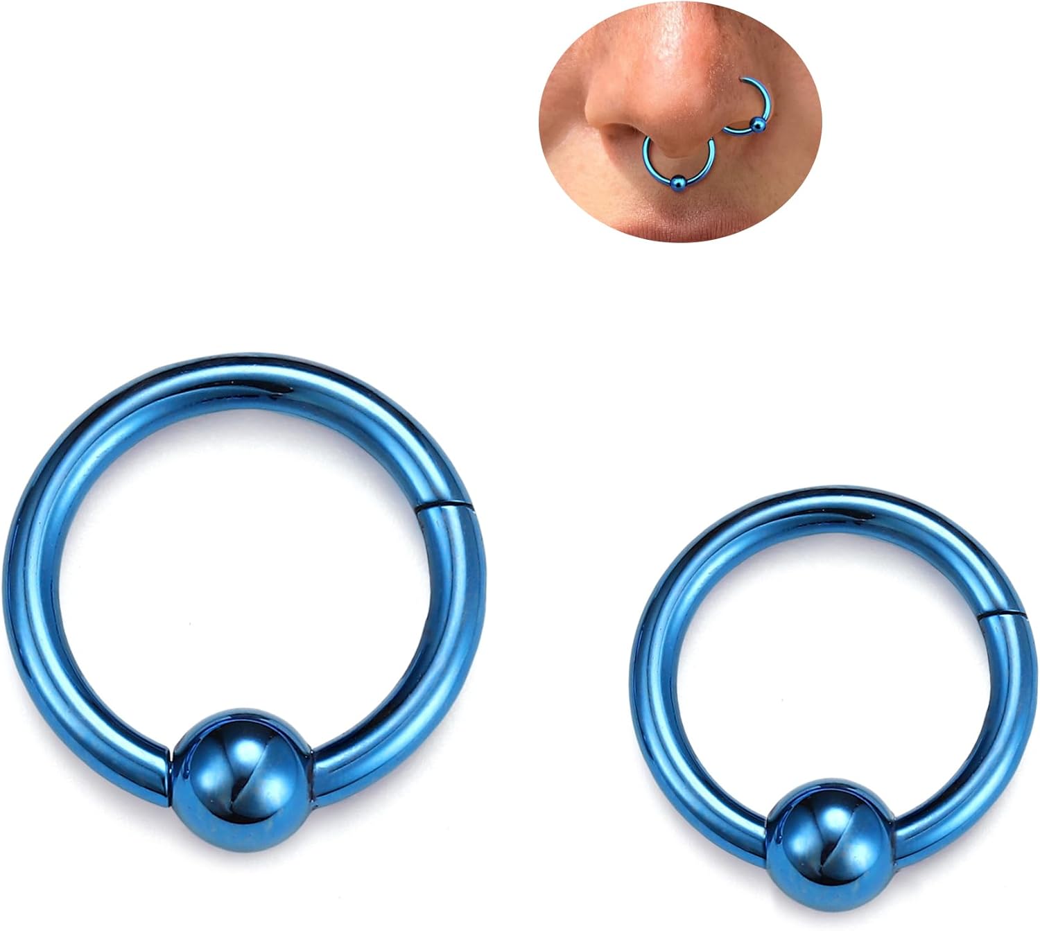 BodyBonita Ball Center Septum Rings, G23 Titanium Nose Rings Hoops, 14/16/18G Hinged Nose Rings for Women Men, PA Captive Bead Segment Ring, Helix Conch Daith Tragus Cartilage Body Piercing Jewelry