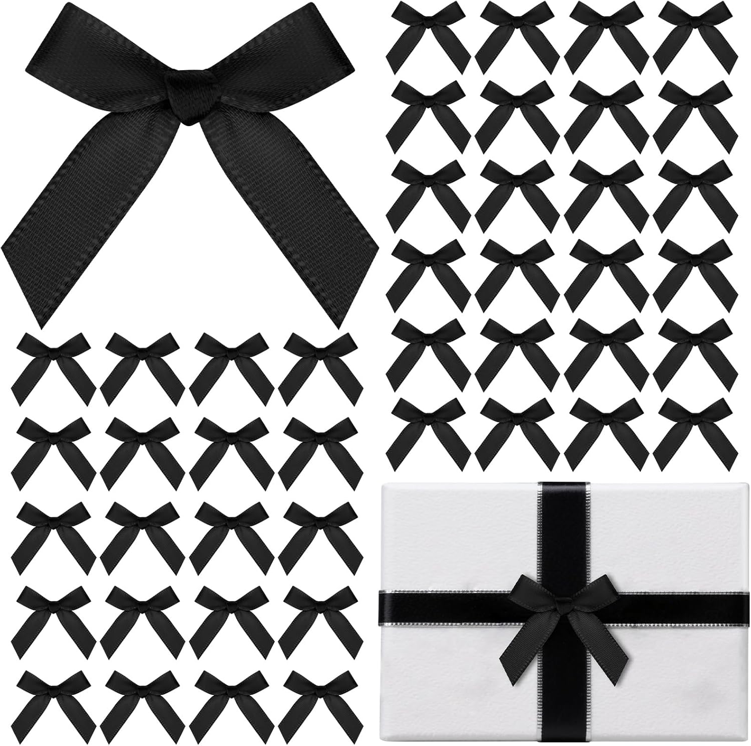 - 【Wide Use】These small black ribbon bow are suitable for a variety of creative uses, such as scrapbook decoration, card decoration, wine glass decoration, bouquet decoration, DIY hairpins, sewing, home decoration and DIY crafts, etc