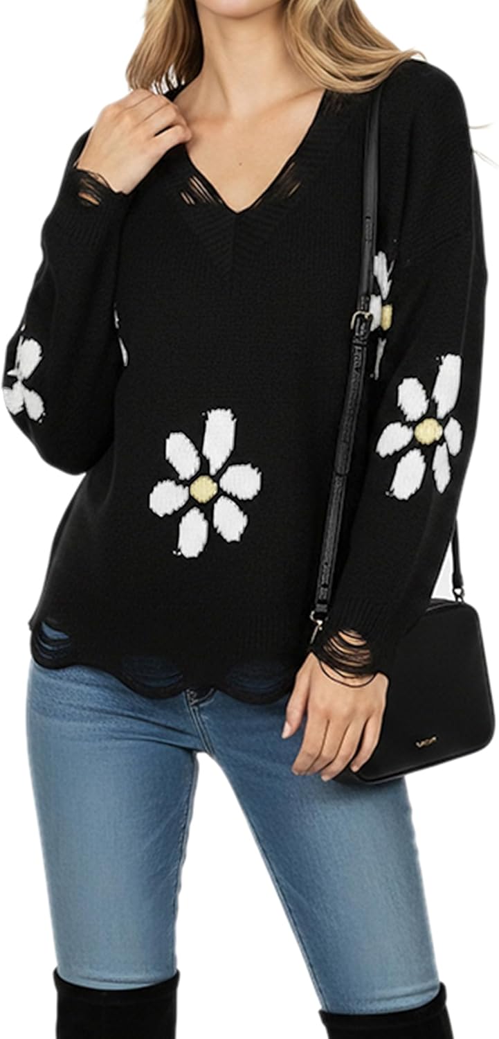 Maxure Women's V Neck Raw-Edge Fuzzy Sweater Trendy Long Sleeve Ribbed Knit Pullover Sweaters Dressy Casual Tops Clothes