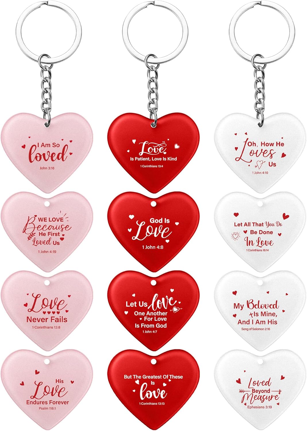 Tondiamo 60 Pcs Valentine Heart Christian Keychain Gifts Bulk Religious Pink Red White Valentine's Day Inspiring Quote Bible Verse Keychains Crafts for School Church Classroom Friends Gifts