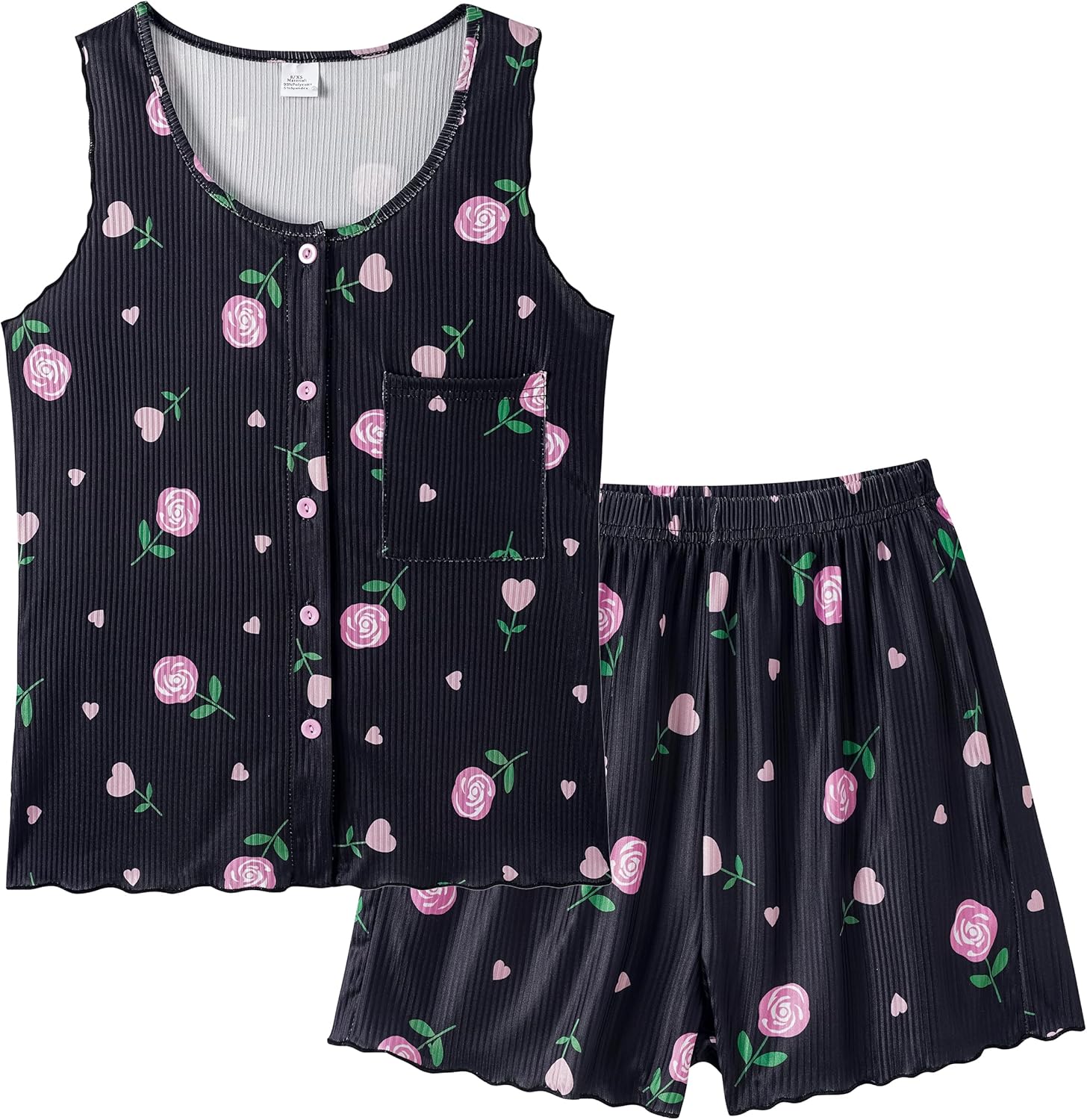Vopmocld Girls Button Down Pajama Sets Sleeveless Tank Top with Shorts for Teen Girls Summer Casual Clothes Loungewear