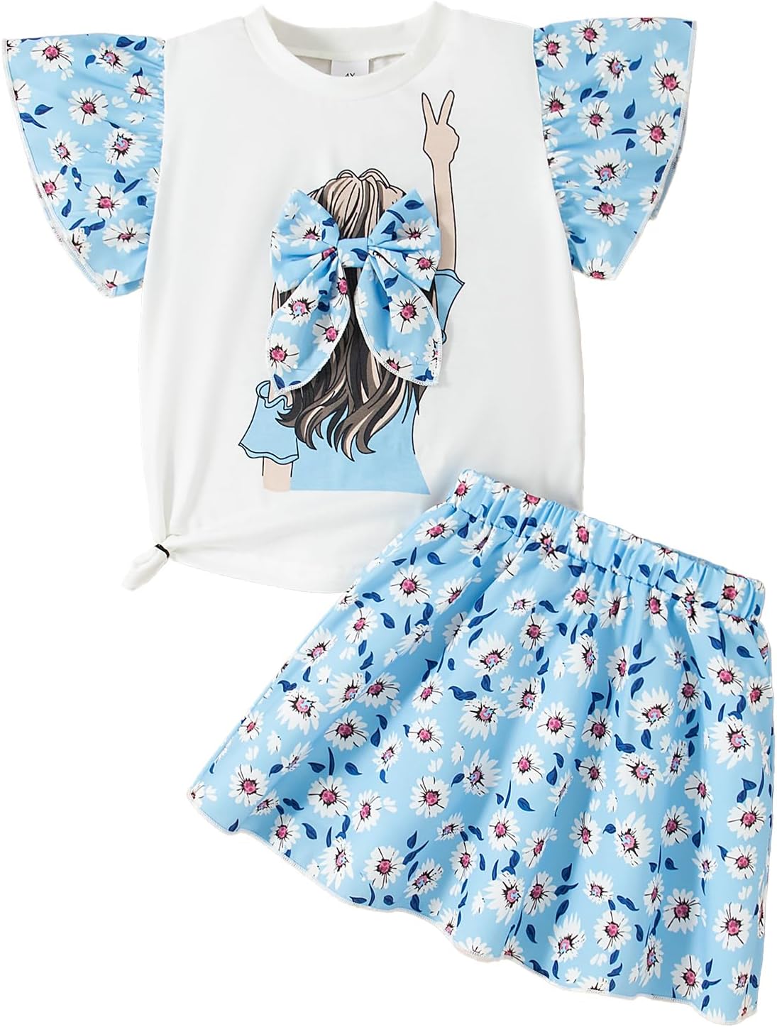 Toddler Girl Clothes Printed Short Sleeve Top Shirt and Skirt 2 Piece Outfits Kids Clothing Set