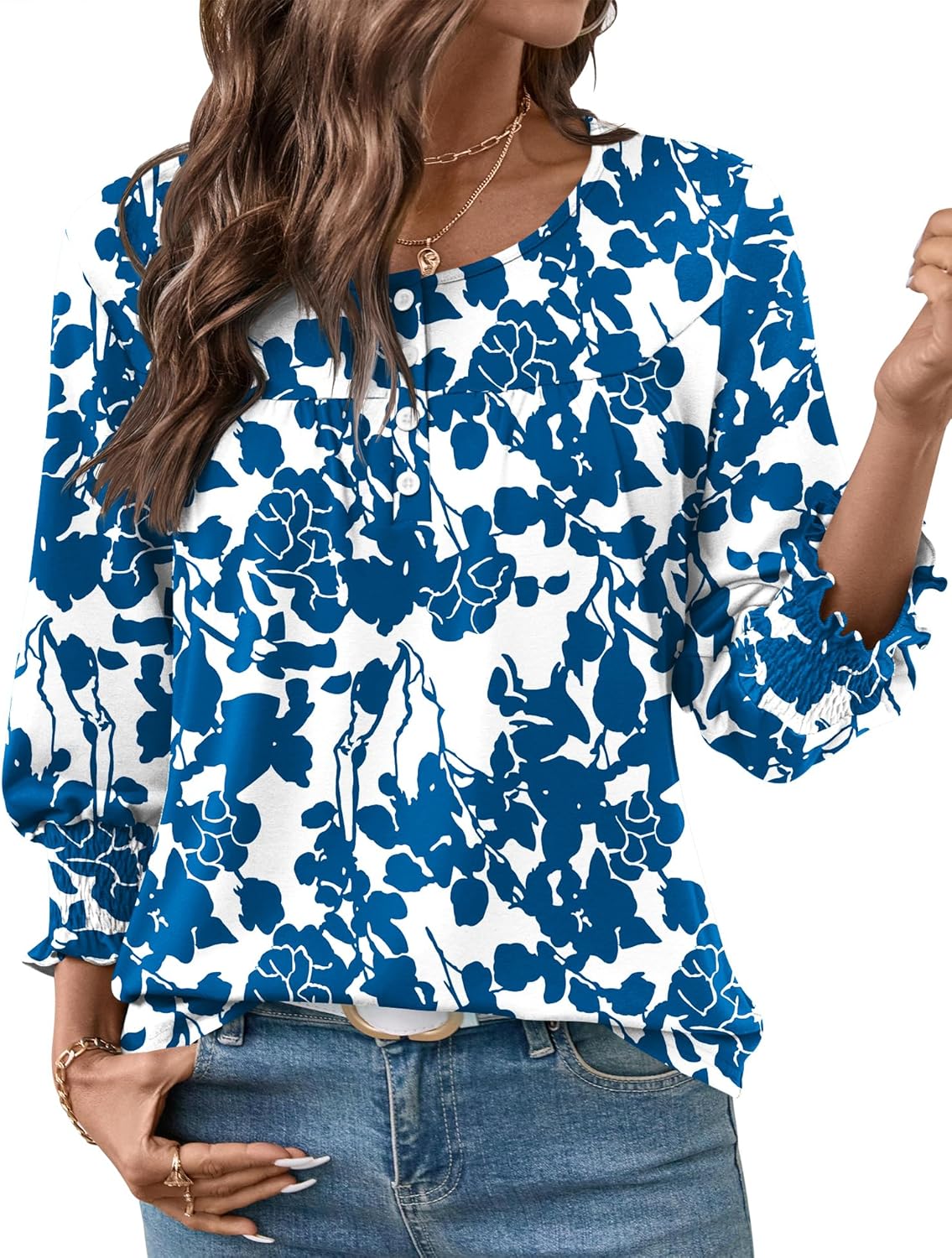 AKEWEI 3/4 Length Sleeve Womens Tops 2026 Fashion Summer Tops for Women Crewneck Casual Loose Fit Pleated Top