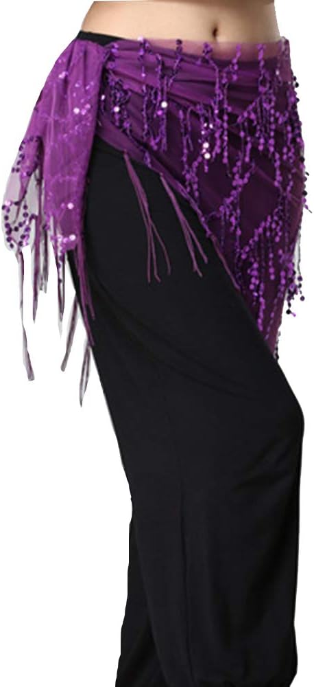 Lauthen.S Women Belly Dance Hip Scarf, Sequin Tassels Triangle Tribal Wrap Skirt Waist Chain