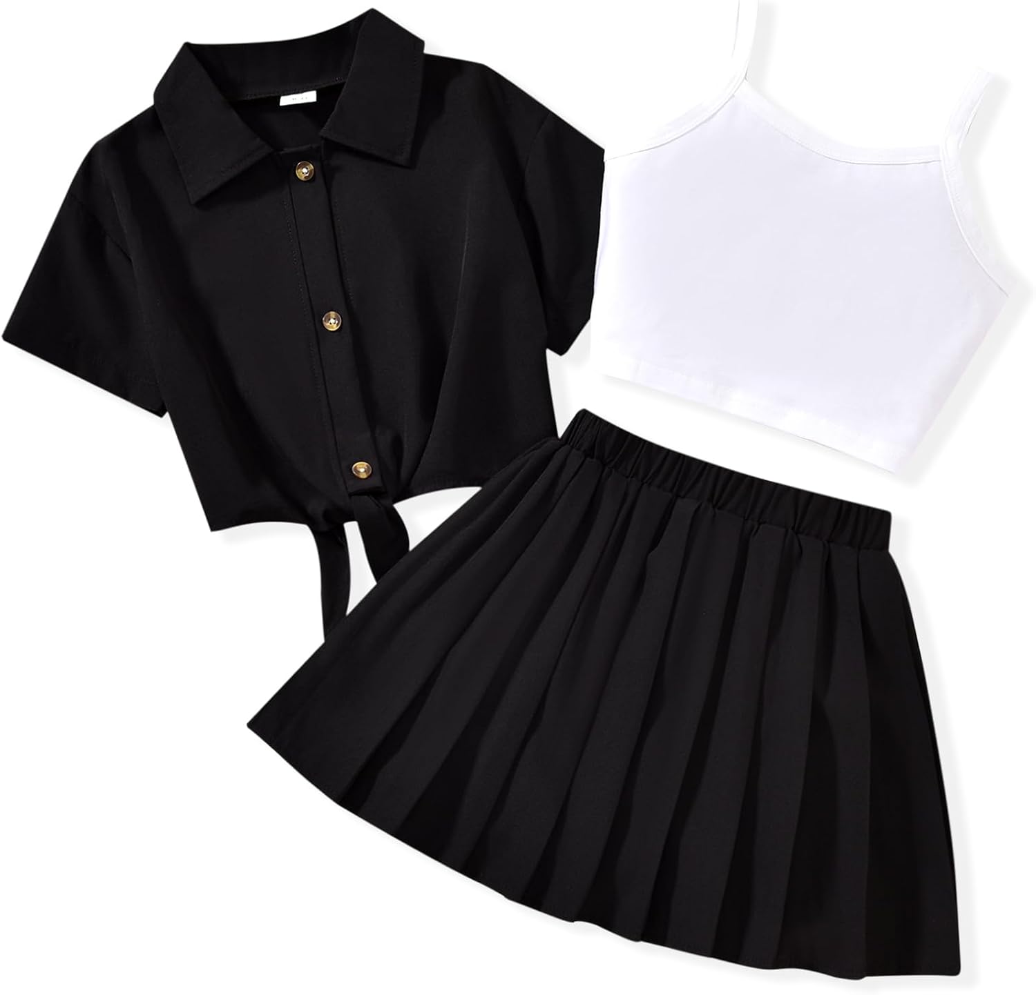 HIHA Girls 3 Piece Outfit Cami Crop Tops Skirt Set with Button Down Shirts Size 6-12