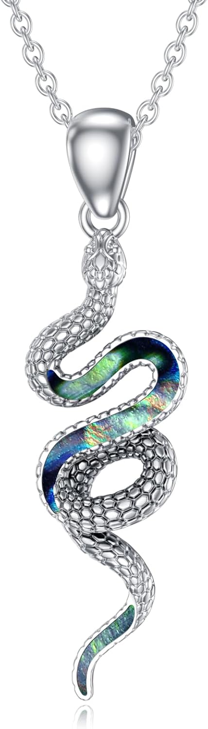 LONAGO 925 Sterling Silver Snake Pendant Necklace for Women Abalone Shell/Turquoise/Opal Snake Jewelry Gifts