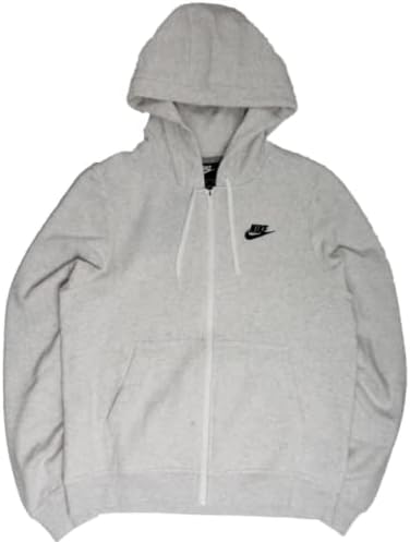 Nike Women's NSW Fleece Hoodie Full Zip Varsity, Birch Heather/White/Black, Large