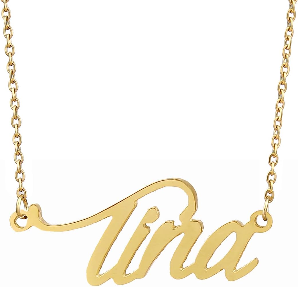 AOLO Personalized Name Necklace Custom Any Name Necklaces Customized Nameplate Stainless Steel Jewelry for Womens Mens