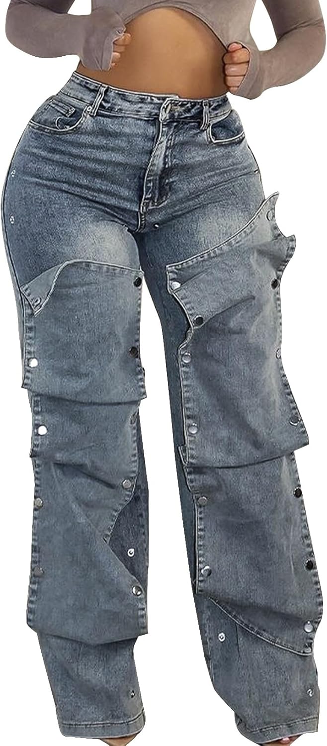 Baggy Jeans for Woman High Waist Patchwork Straight Leg Denim Pants Trendy Y2K Jeans for Club
