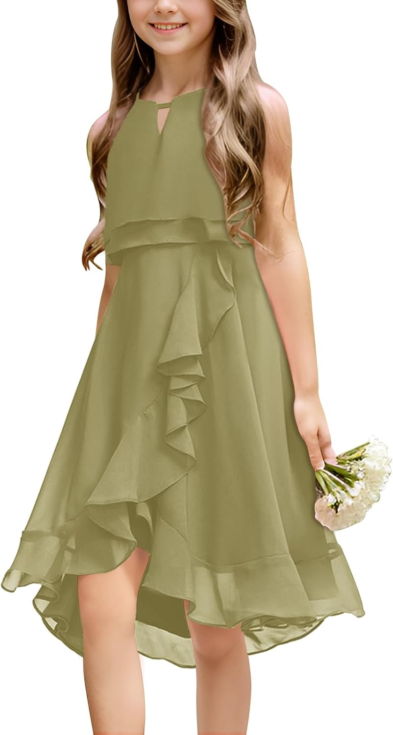 Kids A-Line Halter Neck Chiffon Junior Bridesmaid Dresses Fancy Girl Dress Wedding Elegant Party Gown 5-14 Years