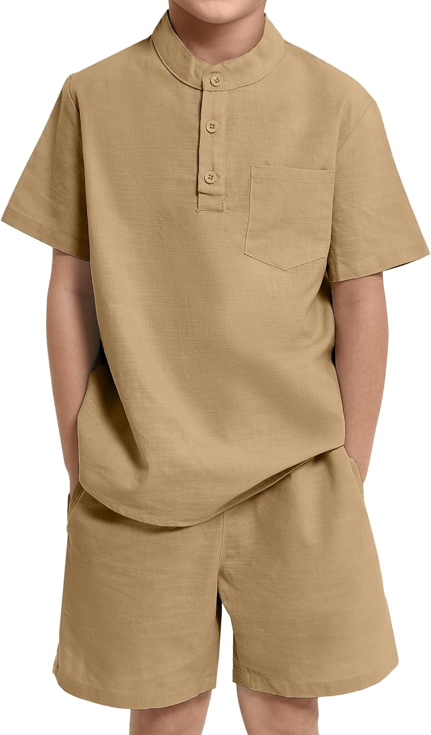 JiAmy Boy's 2 Piece Summer Outfits Casual Henley Button Down Short Sleeve Shirts and Short Sets Kids Clothes Pants Sets