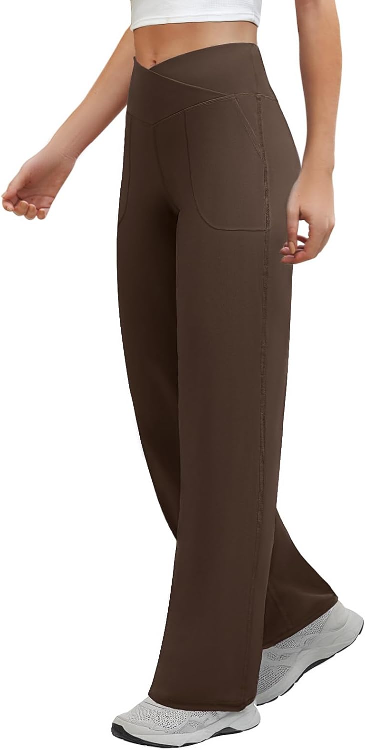 Wide Leg Pants Woman Crossover Yoga Pants with Pockets Loose Stretchy Work Dress Pants Casual Lounge Sweatpants