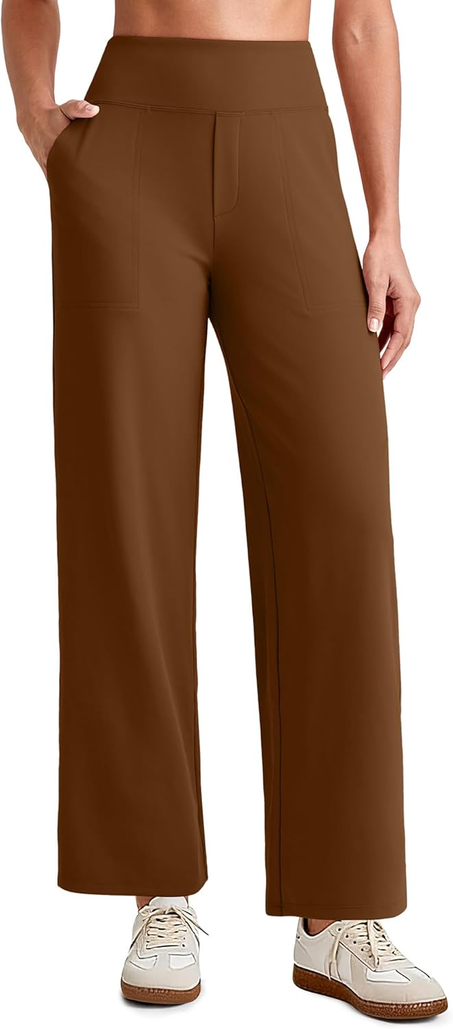 G4Free EverGoing Wide Leg Ankle Pants for Women 7/8 Length Yoga Dress Pants High Waist Stretch with Pockets Casual Work